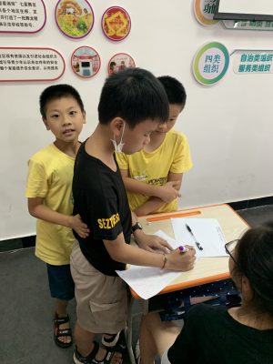 On August 10, four Stepping Stones volunteers began our one-week stay at a summer camp for disadvantaged children in JiaXing China. Tasked to teach English, programming, and design thinking along with empowering children through life-skills and arts & crafts, we were brought into a room where 12 children were waiting for us in their seats. The seats were lined up, four rows by five columns, each paired with a desk that was as big as two pieces of A4 paper. As I walked into the second classroom, a gush of humidity pervaded the space, as the air conditioner struggled to cope with the 35 degrees Celsius summer heat.