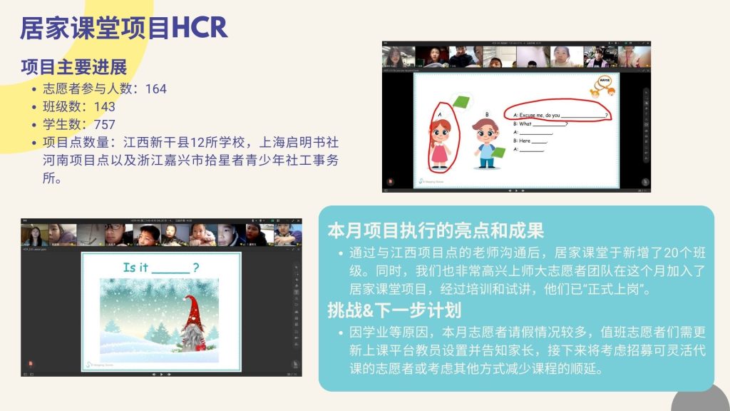 十一月,天气渐凉,铺路石各个项目依旧在如火如荼地开展,且均有所收获——上海英语教学项目举办了“戏剧课工作坊”,居家课堂项目在江西项目点新增了20个班级,学校远程教学项目启动了歌曲课程的试点,数字素养项目的孩子们在积极准备乐高FLL机器人编程比赛。