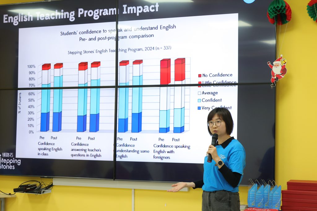 项目负责人分享了英语教学、数字素养及社会情感学习三大核心项目的影响力报告,并细数志愿活动中的珍贵瞬间。